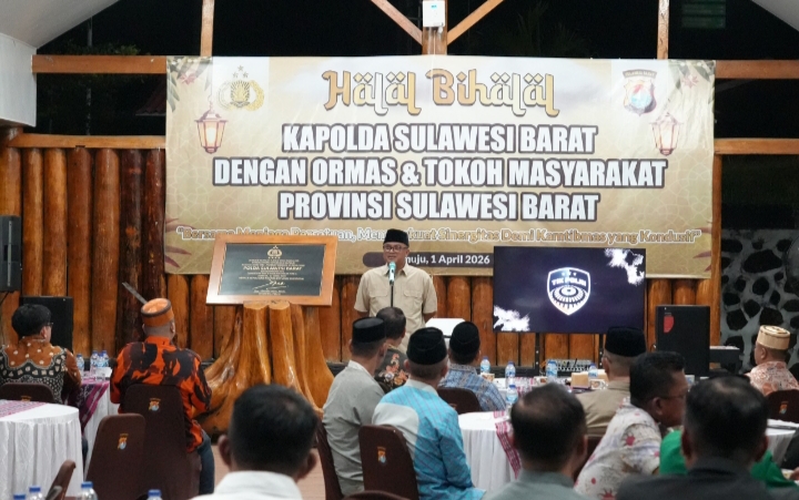 SULBAR | Kapolda Sulbar, Irjen Pol Adi Deriyan Jayamarta menggelar acara halal bihalal bersama Tokoh Masyarakat (Tomas) dan Organisasi Kemasyarakatan (Ormas) se-Kabupaten Mamuju di Baruga Lapangan Tribrata Polda Sulbar, Rabu (1/4/26).